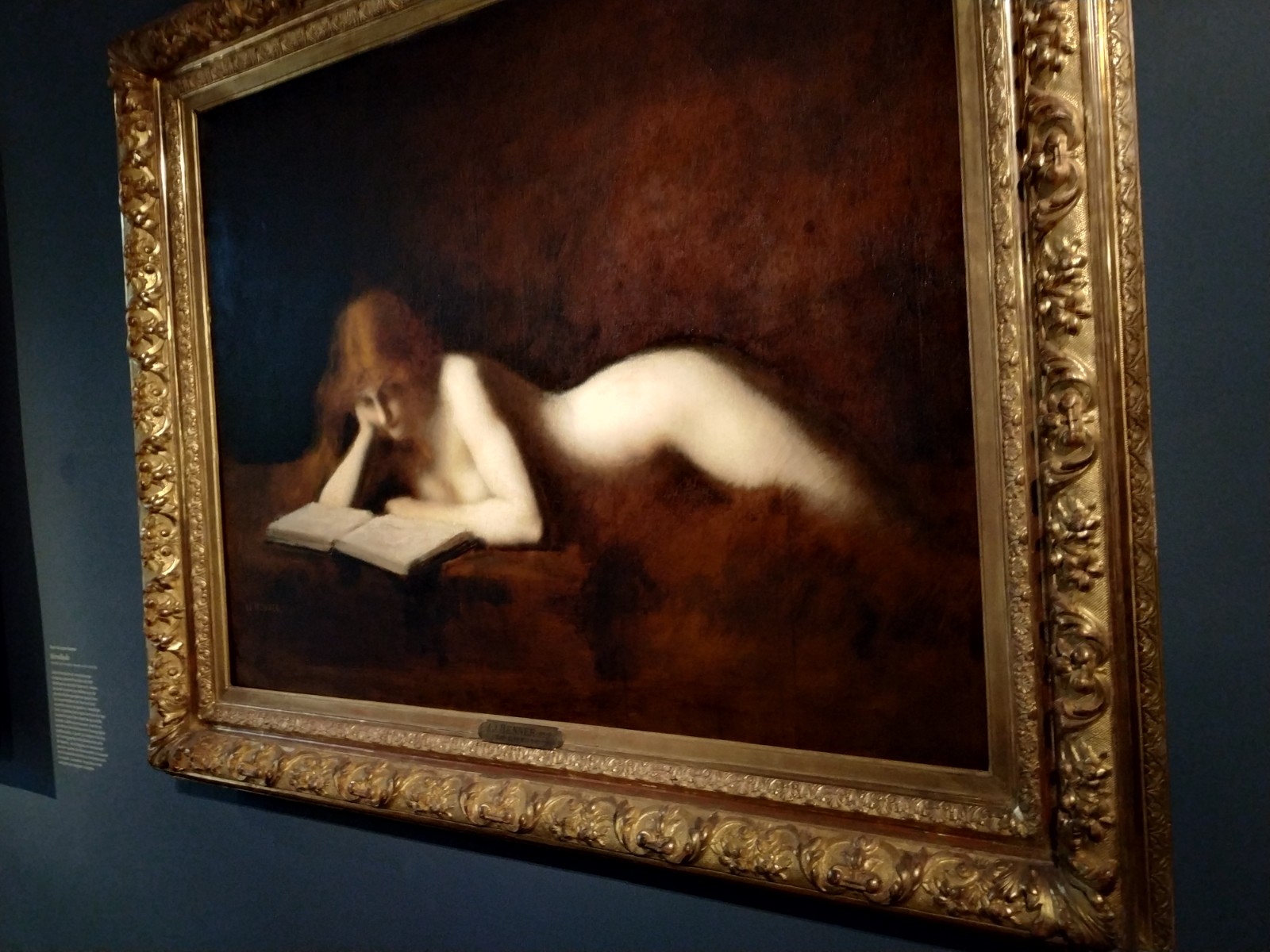 Ancora aperta, fino al 20 maggio (lo dico perché quello che scrivo sia anche di qualche utilità) è invece un’altra bella mostra nel XVIIème (un arrondissement in genere poco praticato), presso il Musée National Jean-Jacques Henner, dal titolo Roux! e dedicata – sì, l’ho scelta io, apposta – ai capelli rossi (alla loro rarità, fascinazione demoniaca, eccezione, ossessione, attrazione, dal tempo del pittore fino a oggi, dall’arte alla pop culture). Il museo è già di per sé un viaggio nel tempo, tra le stanze e le scale di una casa accogliente che deve essere stata anche molto amata; la ricostruzione dell’atelier con scrivania, pennelli e tavolozza (o semplicemente il fatto che nulla sia stato toccato, presumo, da allora) soddisfano anche la più difficile antropologa appassionata di oggetti di memoria e gli schizzi di Henner sono un perfetto preludio delle opere più elaborate che tuttavia, anche nella loro completezza, sembrano sempre sospese nel sogno, in una perfetta soffusa fugacità, e con soggetti che non sai se saranno così disciplinati da restare là buoni e fermi, non appena avrai distolto lo sguardo.