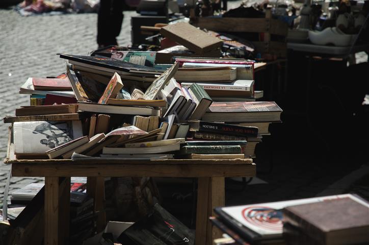…dove non faccio mai nessun affare ma solo foto – e dove abbandono Teo al primo bancone di libri per tornare poi a cercarlo un quarto d’ora dopo e trovarlo esattamente dove l’ho lasciato.
