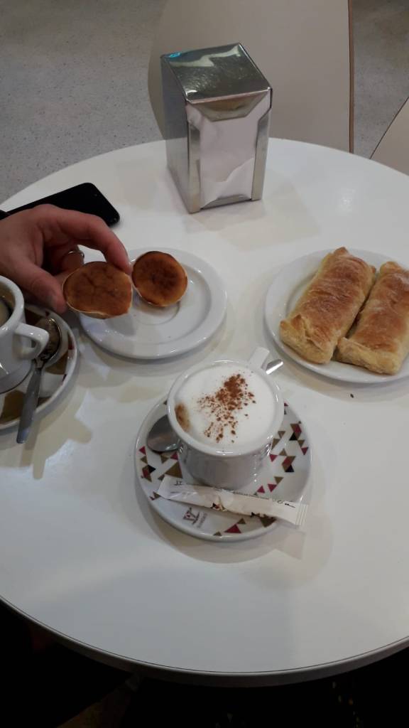 Ho ripensato a questa delicata questione mentre passeggiavo qualche giorno dopo per la bella Rua dos Remédios, a Lisbona, dove abbiamo soggiornato per una settimana e fatto regolarmente seconde colazioni nelle varie pastelarias e in particolare in quella all’inizio della via, l’Alfacinha, buona e onesta, con i suoi habitués, la sfilza di dolci cremosi (ce li sognamo ancora la notte, e anche il giorno), i barattoli di lupini e le signore del quartiere (sempre a tre a tre) che si incontravano là per un caffè.
